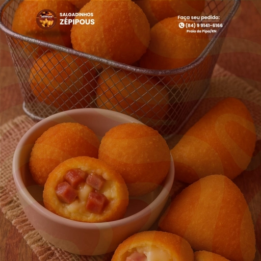 50 unidades de Coxinhas de frango & bolinhas de queijos 25 de cada sabor